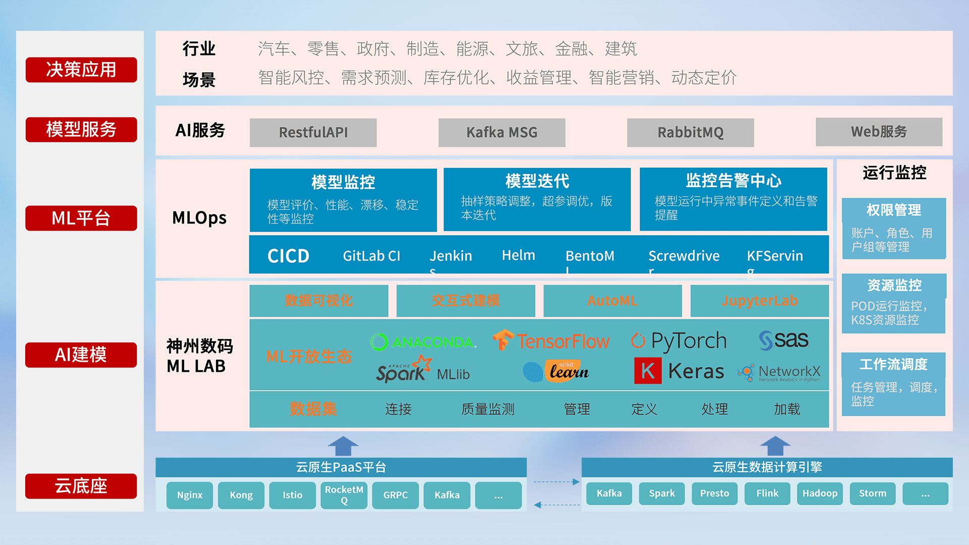 数据+模型双引擎驱动,,,面向智能服务场景,,快速灵活利用AI技术,,,,支持业务决策,,助力企业智能化转型破局。。。。